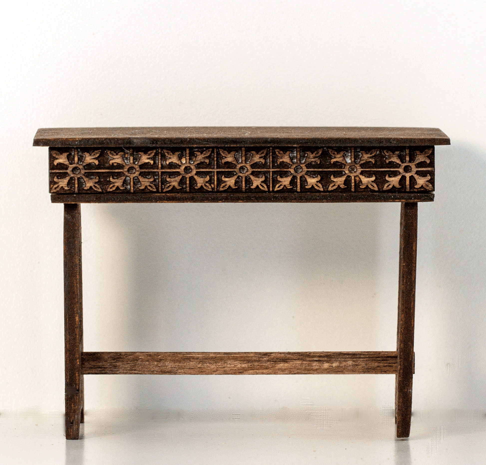 The 1 12 scale desk measures 1 7/8 inches deep x 3 3/4 inches wide x 2 1/2 inches tall.