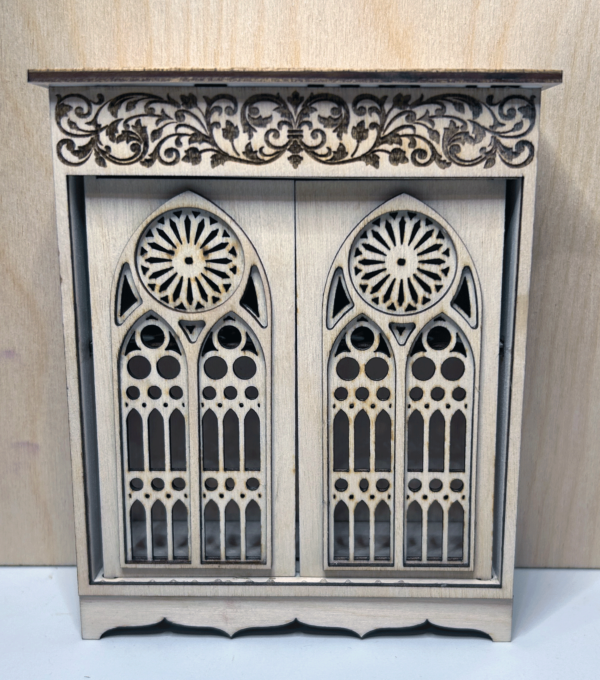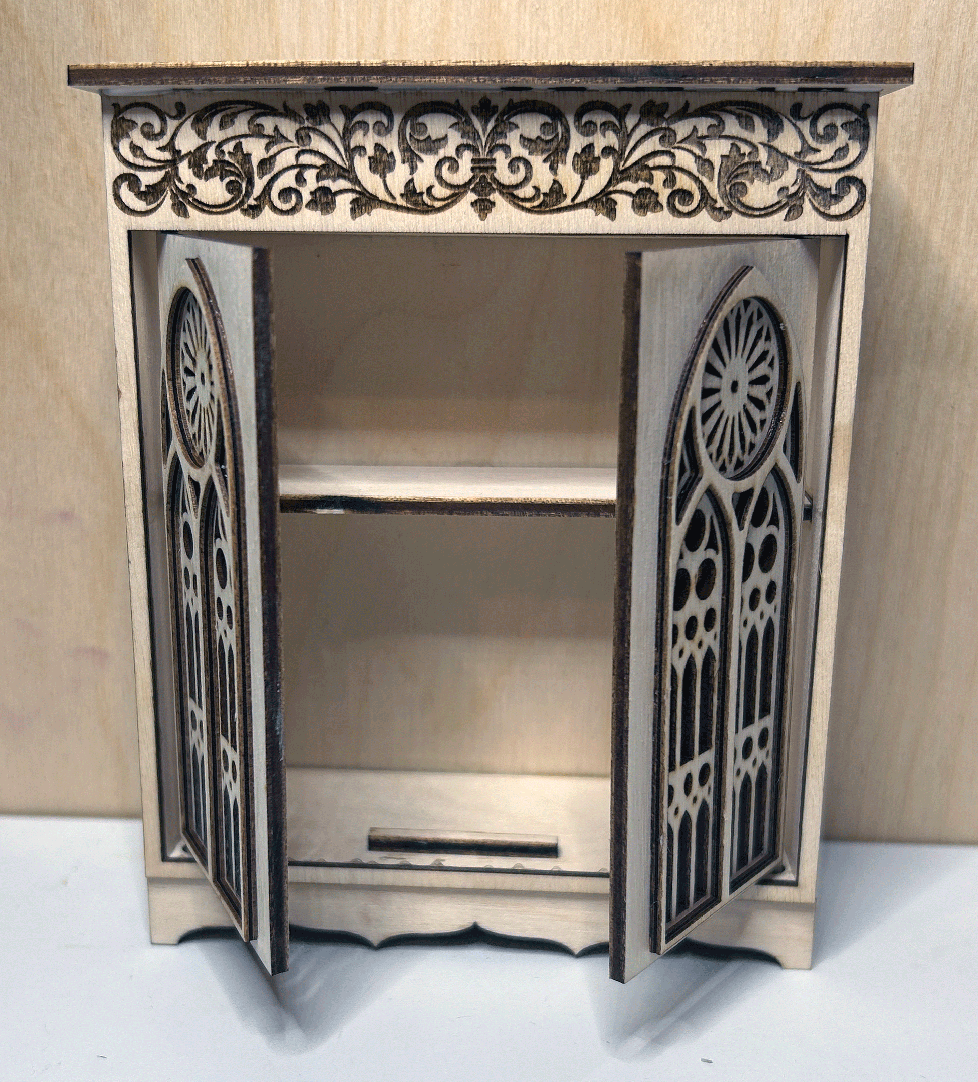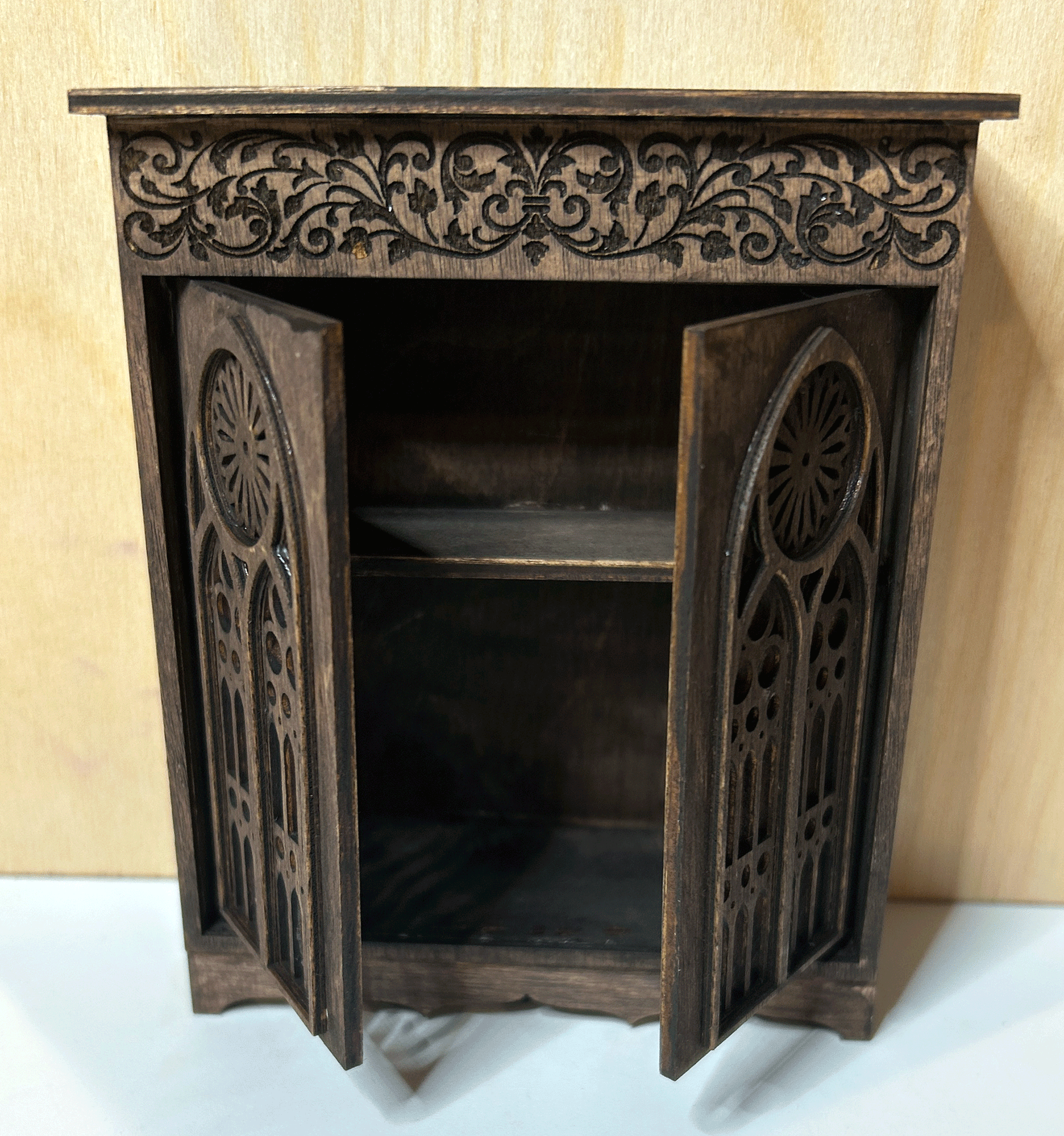 Miniature Medieval Gothic Style Two Door Cabinet - 1 12 or 1 24 Scale Kit